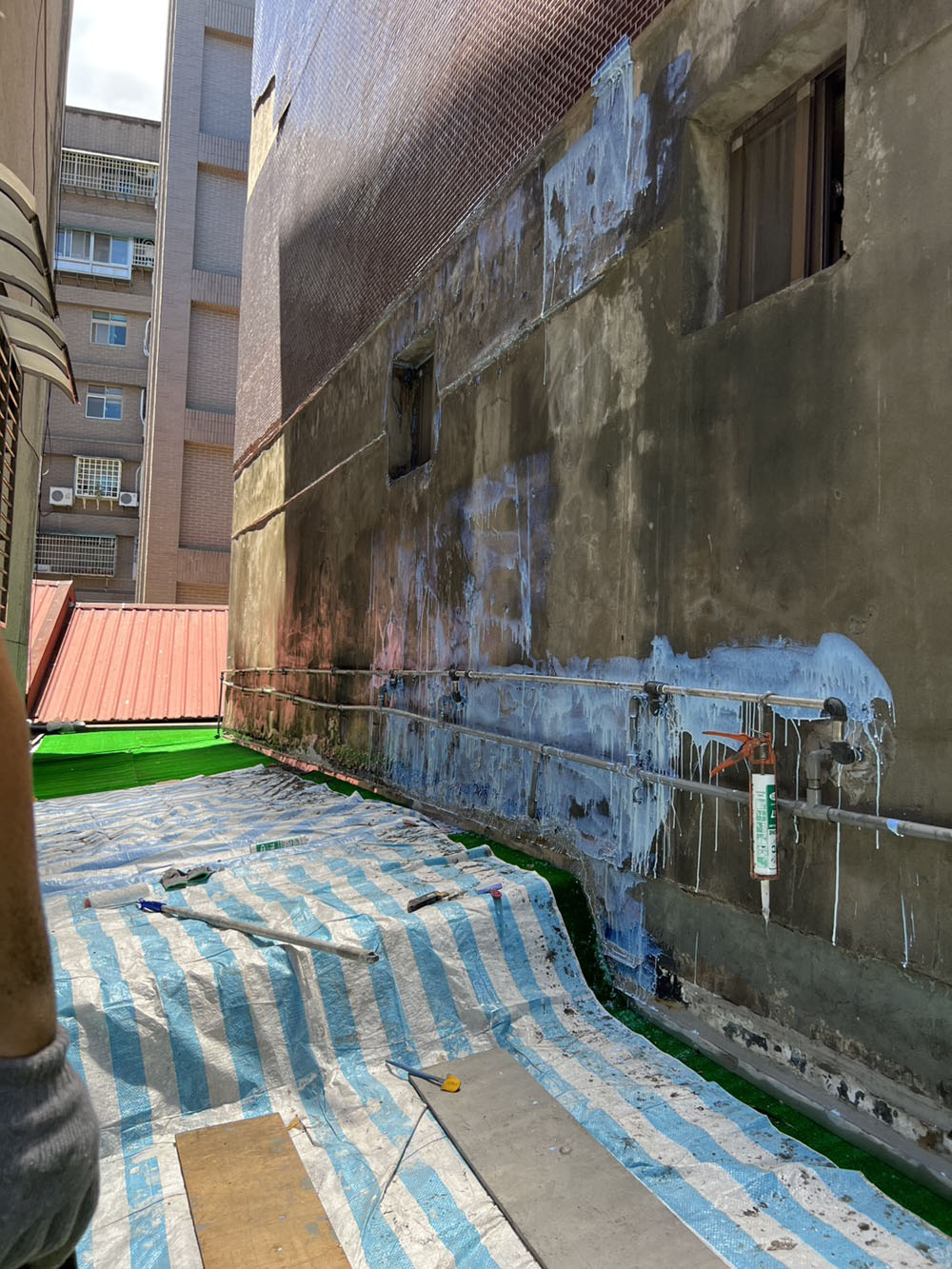 針對外牆滲水問題進行裂縫補強與防水塗層施作,提升牆面耐候性與防水能力,避免雨水長期侵蝕結構