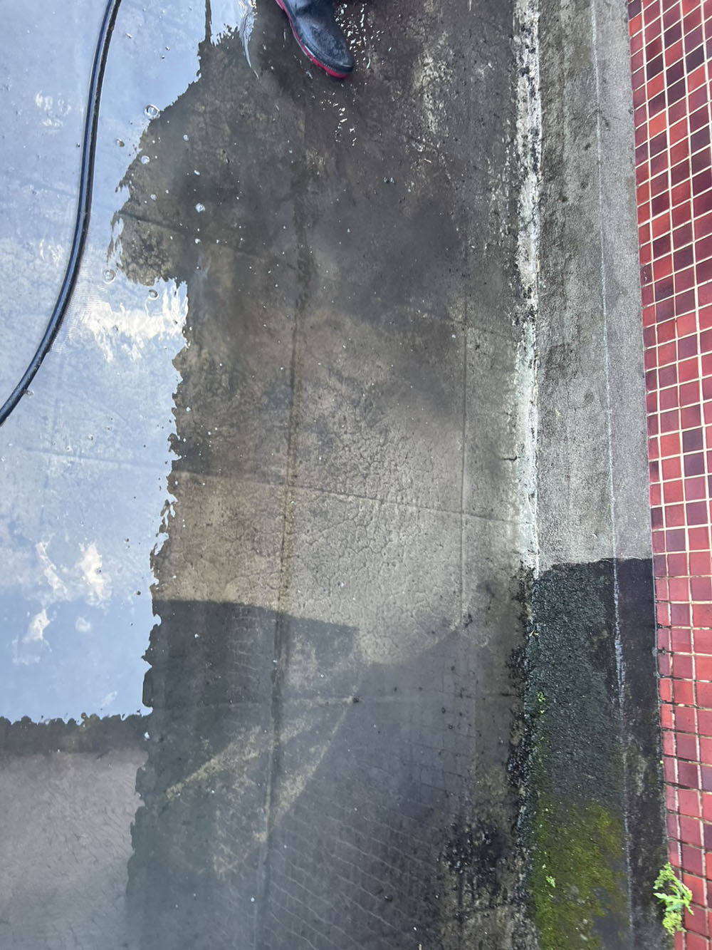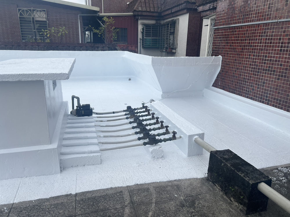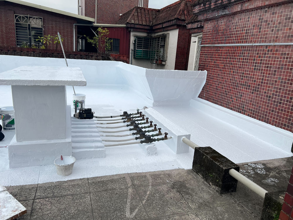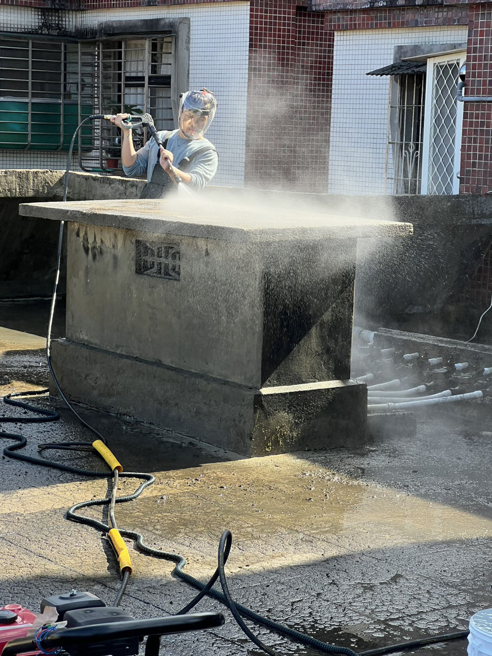 頂樓先進行高壓清洗去除油污與粉塵,再施作防水層,確保基面乾淨提升附著力並延長防水使用年限